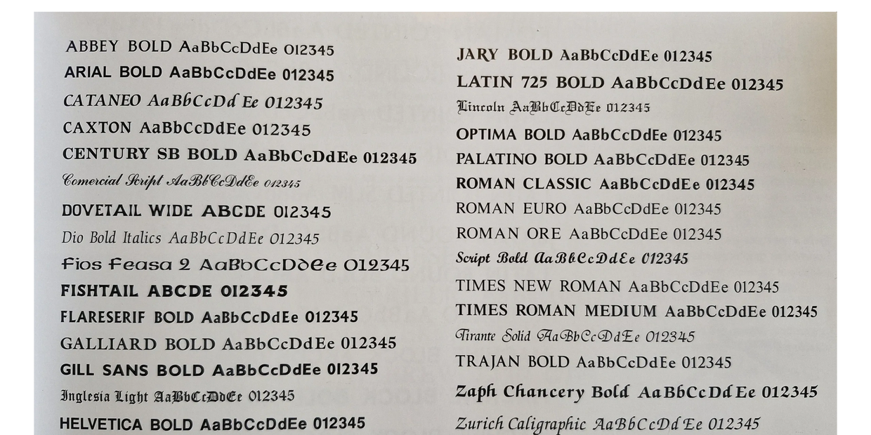 We have hundreds of fonts on file so if you can't see what you are looking for then please give us a call and we would be happy to help.